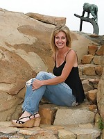 Sizzling hot blonde Anilos cougar spreads her pussy lips apa...