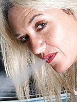 - Busty blonde cougar Karen Fisher finger fucks her mature pus...